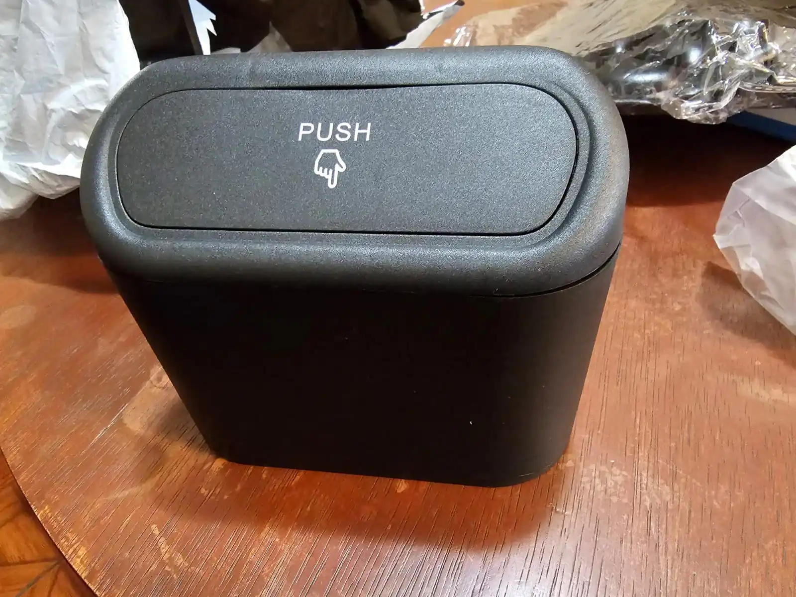- LEAK-PROOF DESIGN- The cover of the car trash can has a spring-loaded lid: push down on it to insert your trash, and it flips back up to the closed position to keep your car garbage from spilling out. Car trash bin can effectively seal in any foul odor and keep the car trash out of sight. This car garbage can keeps your car tidy and clean.